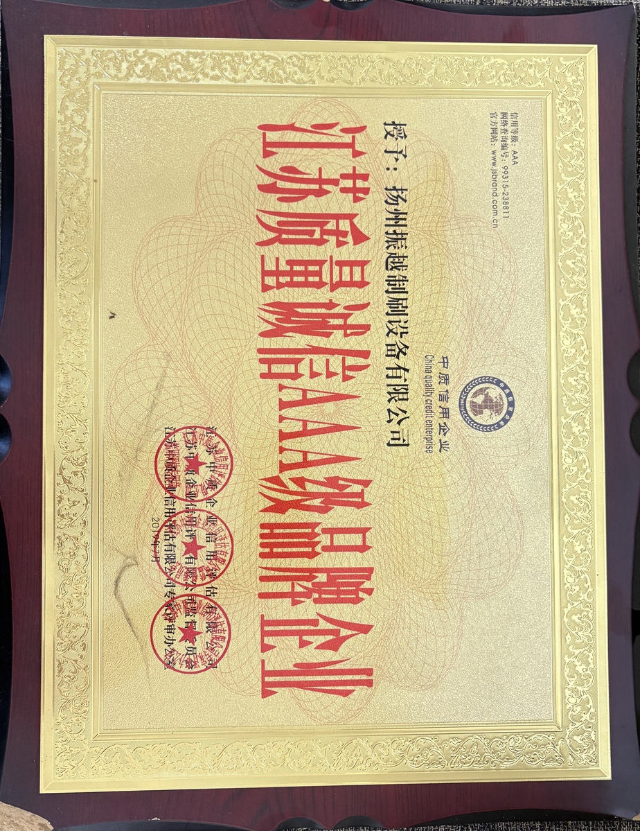 | Nome do certificado: | Jiangsu AAA-level Brand enterprise of Quality and integrity |